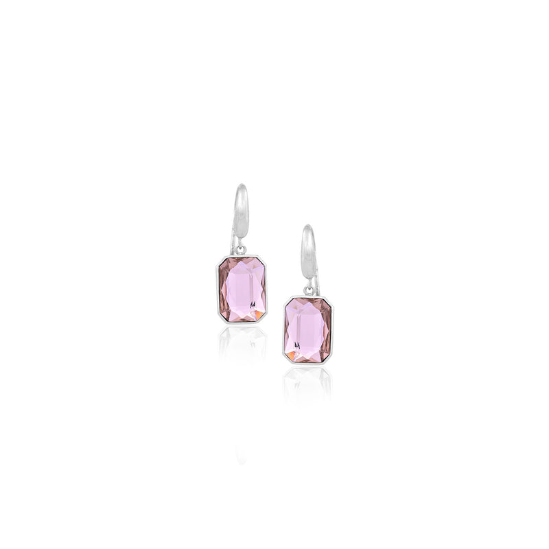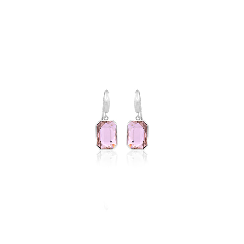 Crafted in sterling silver, these earrings feature a stunning pink stone set within a sleek, elongated frame, blending sophistication with a subtle pop of color.