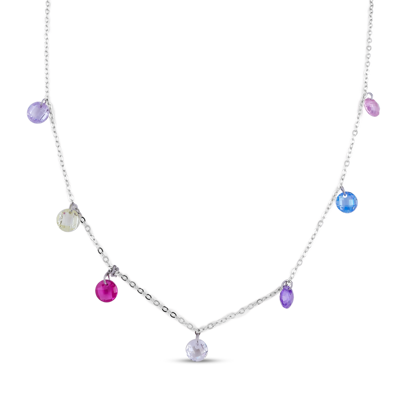 Multicolor Crystal Bead Necklace – Dainty Silver Chain with Rainbow Charm Drops