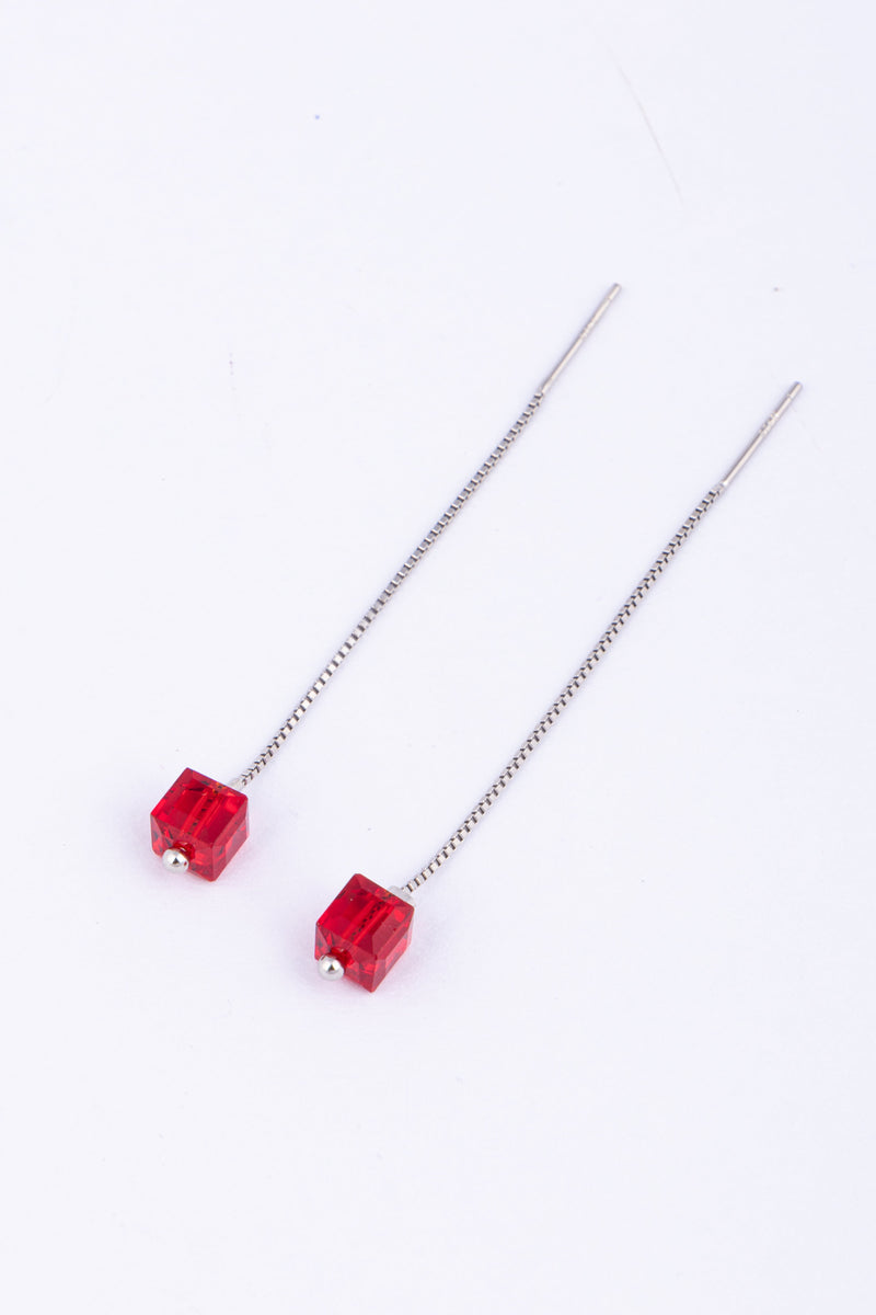 Design Details: These elegant threader earrings feature a sleek, elongated design with a thin, 925 silver-colored box-link chain that effortlessly threads through the ear. Each earring is adorned with a small, vibrant red faceted bead near the end, adding a striking pop of color and a touch of elegance. The minimalist design makes these earrings suitable for both casual and formal occasions, offering versatility and style.