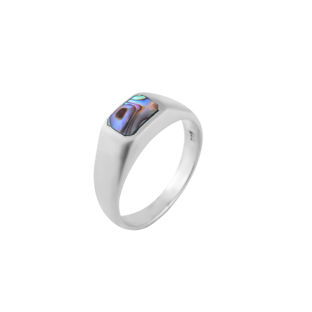 Make a bold statement with the Balone Inlay Silver Signet Ring. Its unique design and craftsmanship reflect modern elegance, making it a standout piece in any jewelry collection.