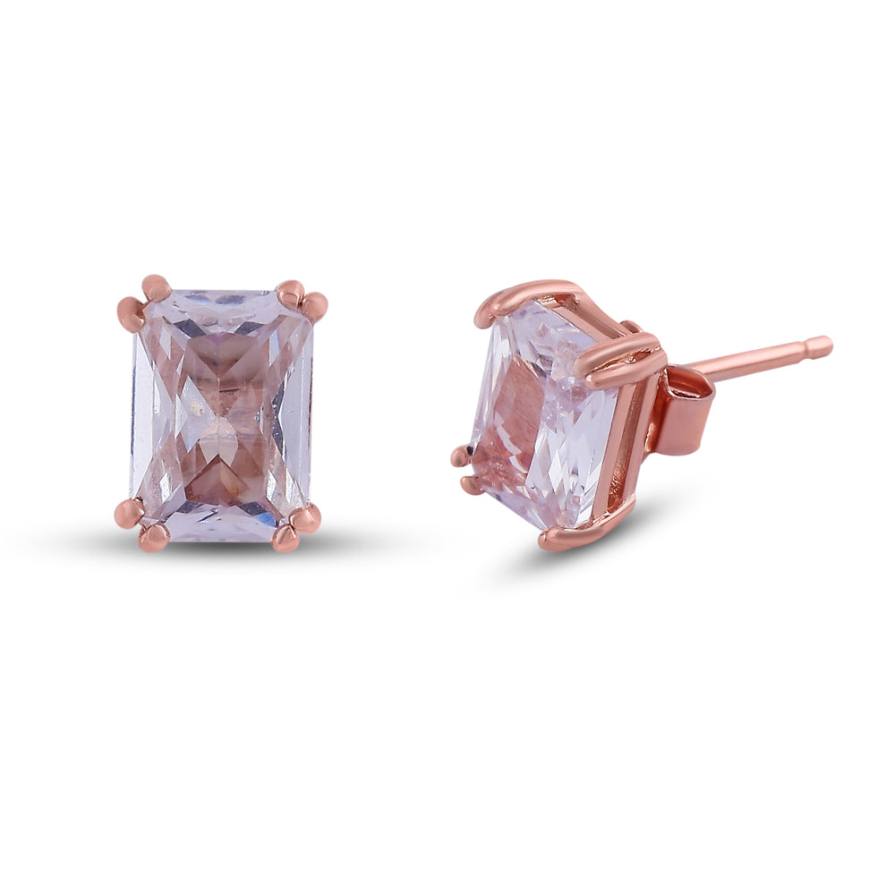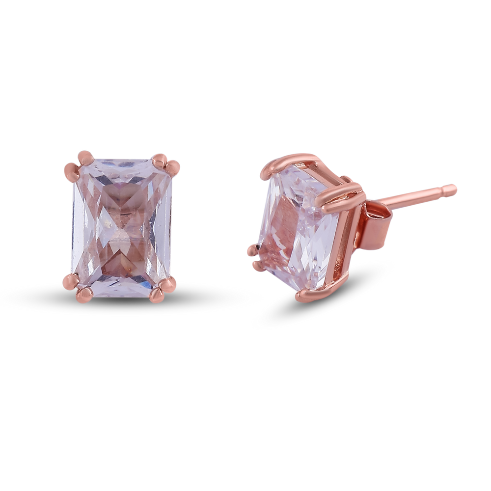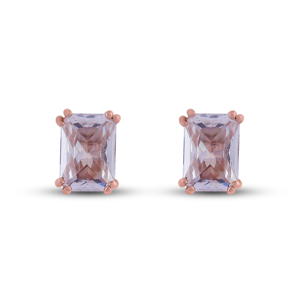 These stud earrings feature a beautifully emerald-cut lavender gemstone, secured in a 4-prong rose gold setting. The clean lines of the stone, paired with the warm glow of rose gold, create a sophisticated look that transitions effortlessly from day to night.