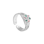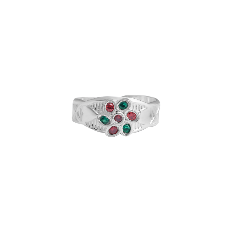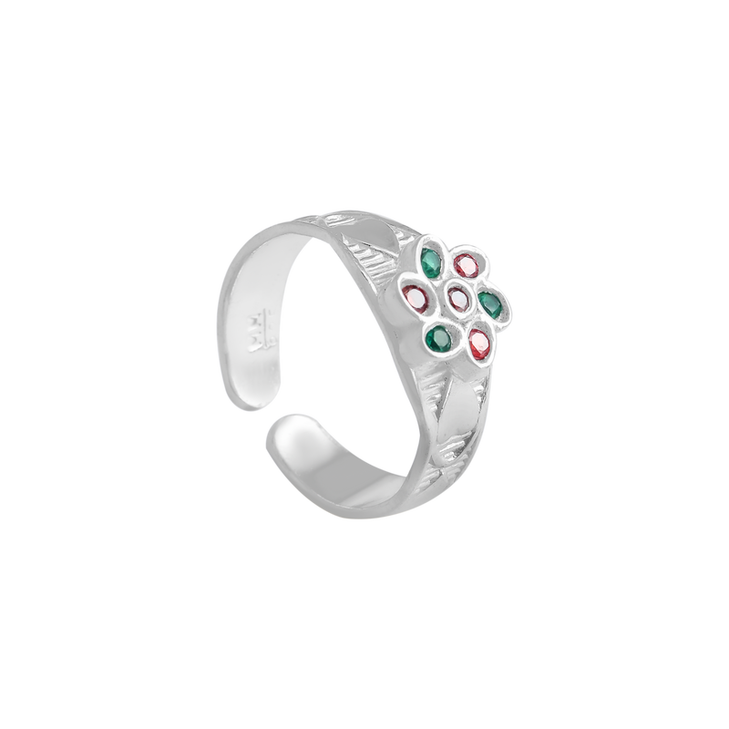 Floral Gemstone Toe Ring – Silver with Red & Green Stones