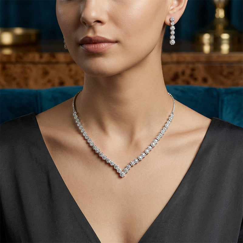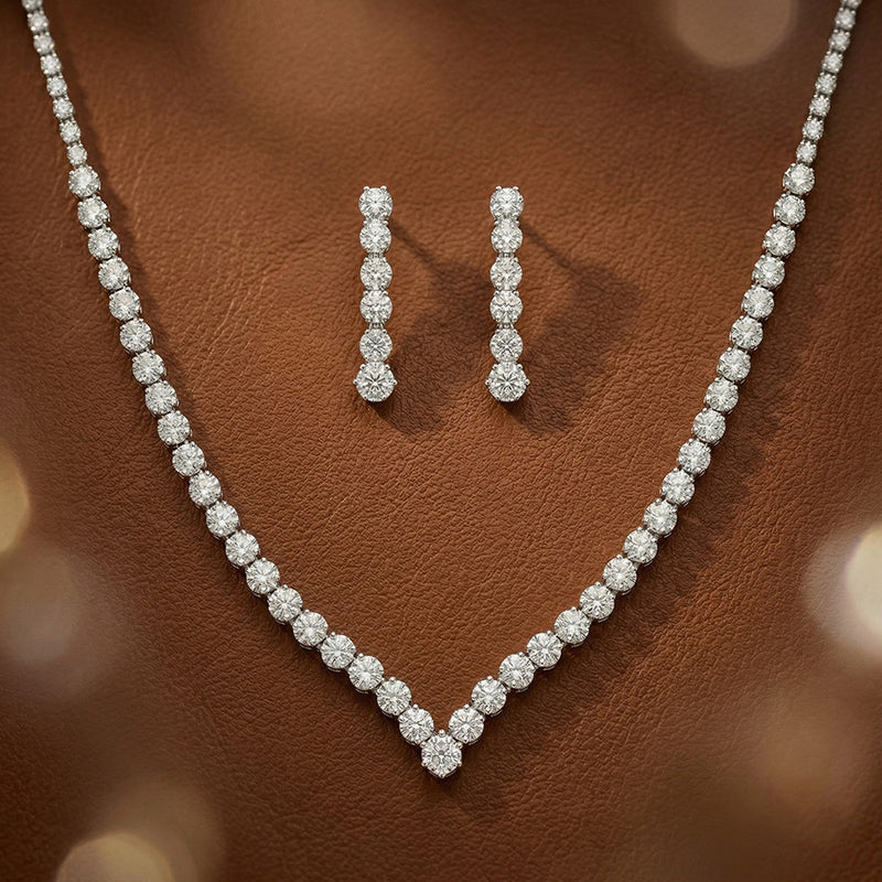 Shine with effortless elegance in this Flâneur CZ necklace set, crafted in 92.5 sterling silver. Designed with a continuous row of shimmering stones and matching earrings, it delivers a luxurious sparkle with a modern touch. Perfect for weddings, parties, or elevating your everyday style with refined brilliance.