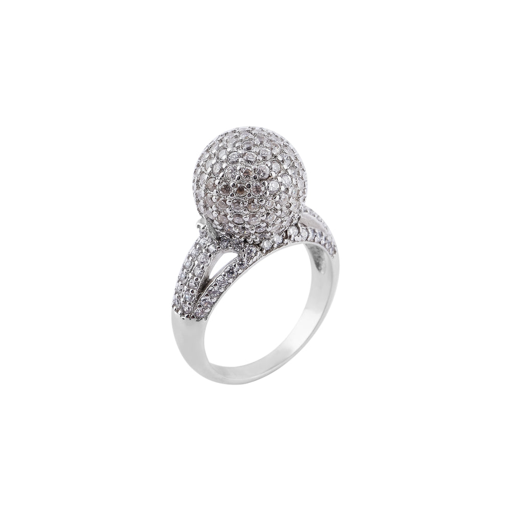 This beautiful ring features a detailed cluster of pave stones set in high-quality silver. The intricate pattern and shimmering surface make it a versatile piece perfect for both everyday glamour and special occasions.
