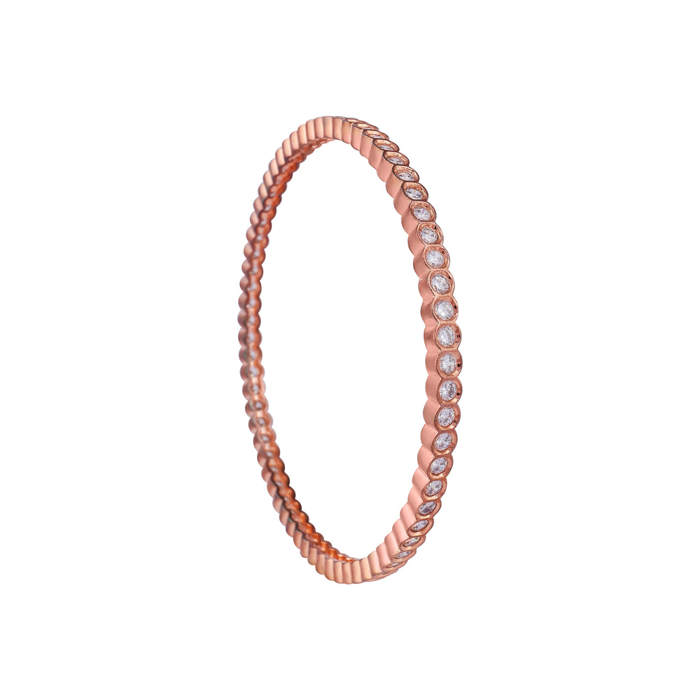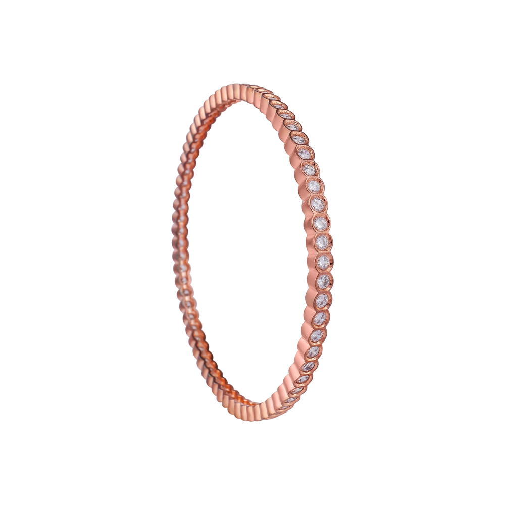 Add a touch of modern grace to your wristwear with the Rosé Radiance Bangles – a twin-set crafted in a luxurious rose gold finish and adorned with a line of brilliant white stones. The textured band brings a sculptural charm, while the precision-set stones deliver endless sparkle. Perfect for stacking or wearing solo.
