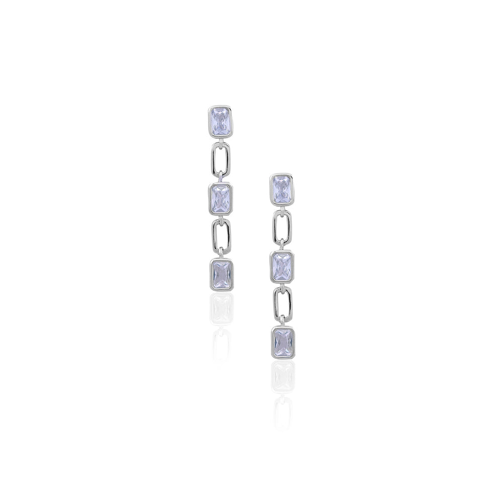 These sterling silver earrings feature a stylish linked design, creating a minimalist yet bold statement.