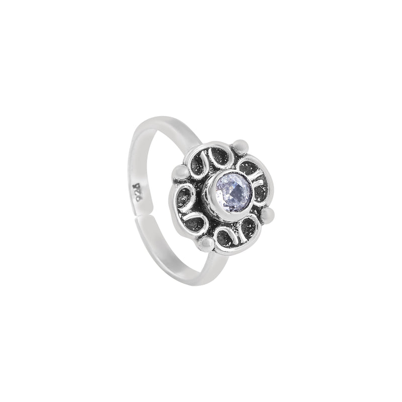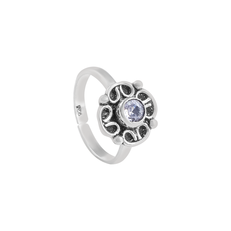 Step into elegance with this stunning vintage floral toe ring, designed to add charm and sophistication to your feet. Crafted with a classic oxidized silver finish, the ring features a detailed floral pattern and a sparkling purple centerpiece that catches the light beautifully.